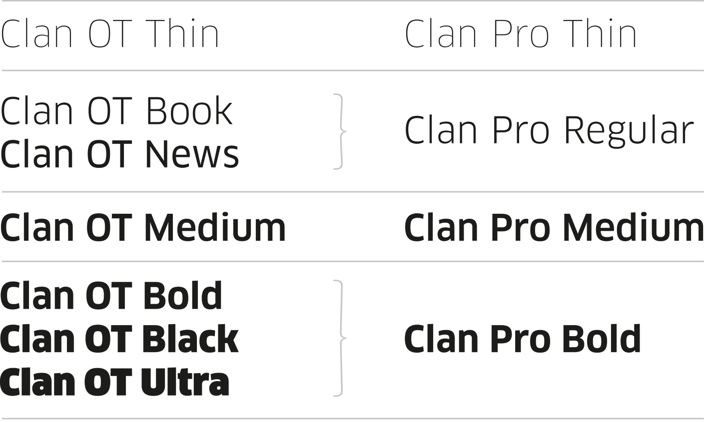 By June 2020 we updated the Clan font from Clan OT to Clan Pro. The new font has all the characters that is need in the diffirent contries - which the old one ditn't.
