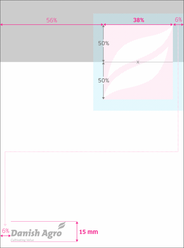 When working with ads the logo with Cultivating Value shall have a height of 15 mm. The logo shall be placed with the same distance to the left side as the trademark has on its right side - 6%, which in this case also is 8 mm.