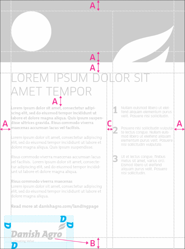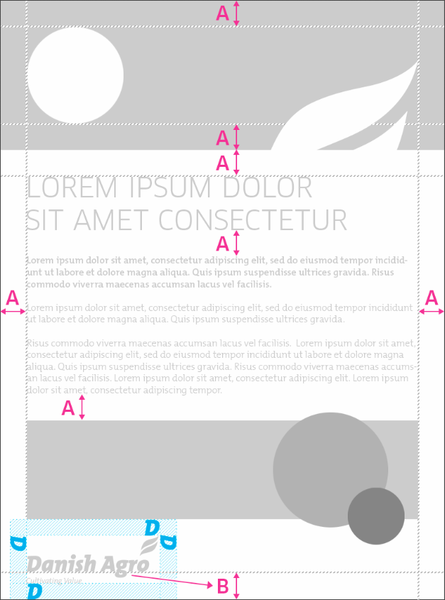 One of the cornerstones of the group's advertising is our trademark - the two leaves that represent growth, development and progress and provide a visual link to our industry. Therefore, the grid on which the ads are build is based on the size of our trademark and the respect distance that must be around it.