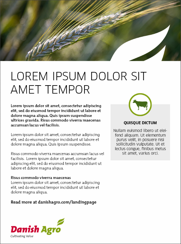 The premise for the group's advertisements and marketing is to offer the farmers the products and services needed at a modern farm and to show that we create as much value as possible for the farmers we work with.