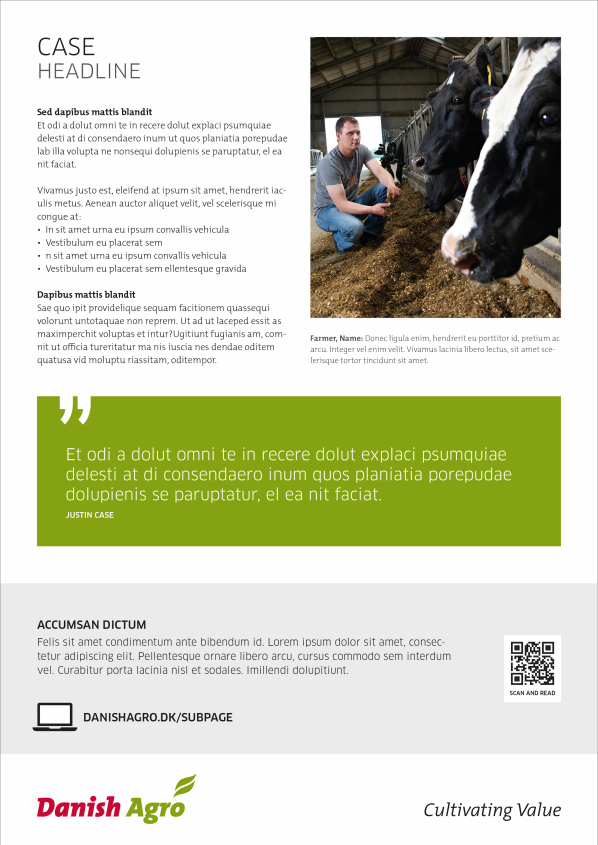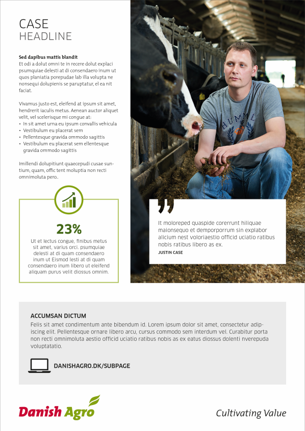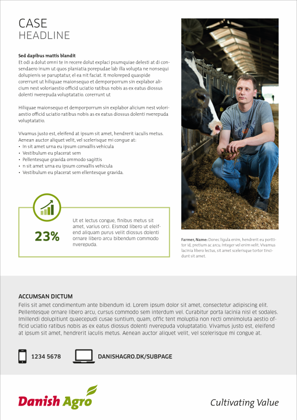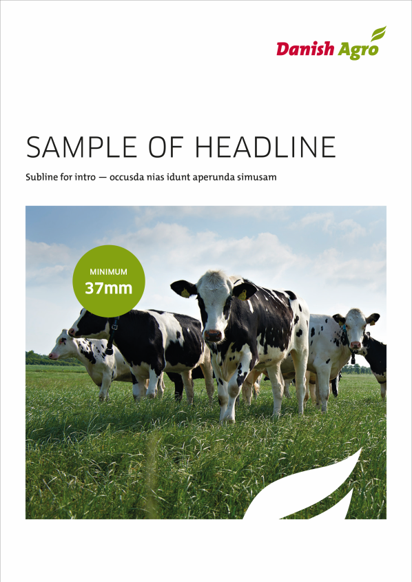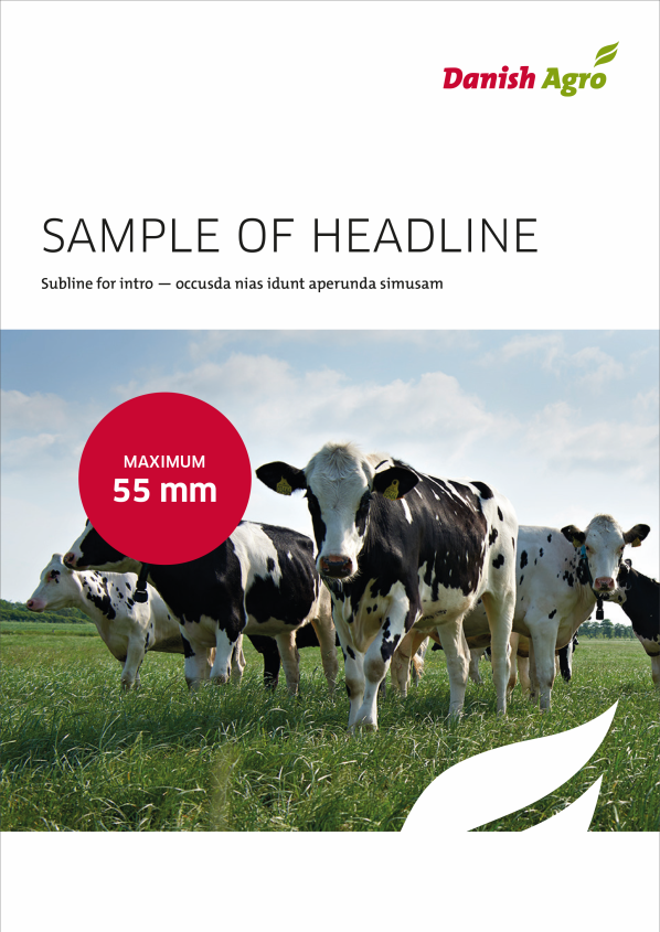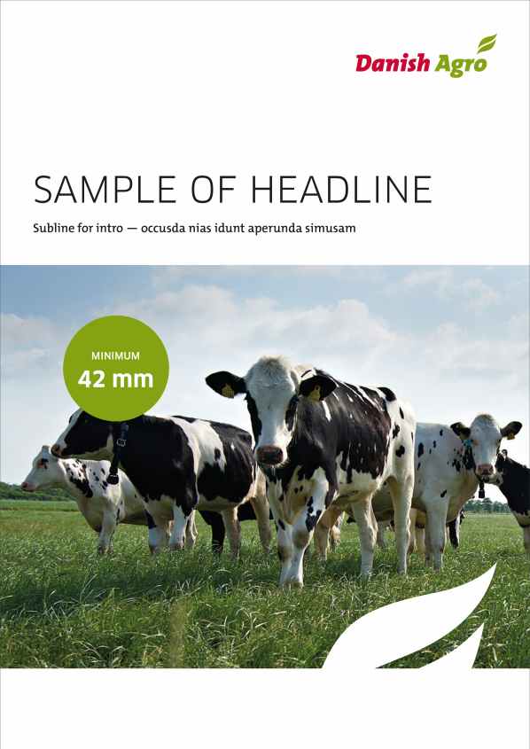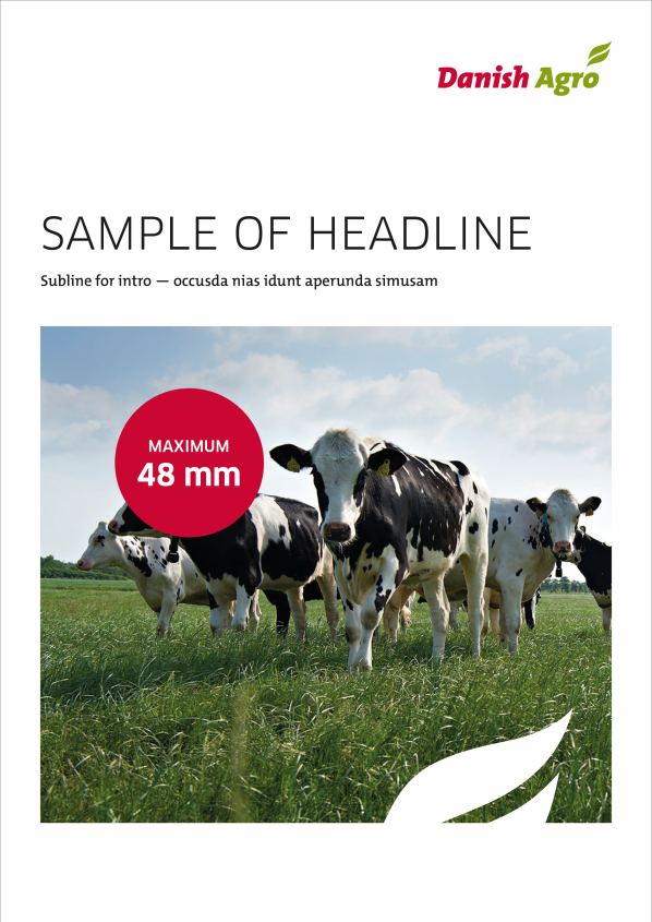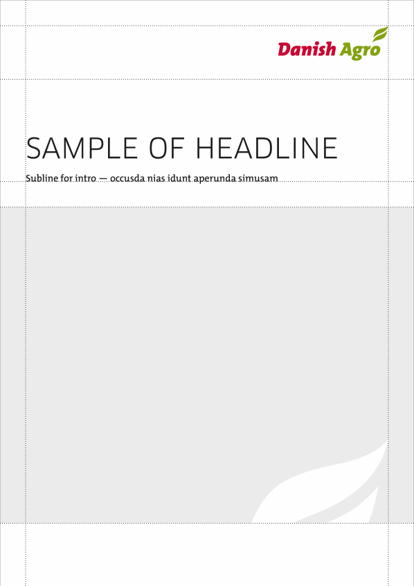 If you want to highlight the content of the brochure or give the frontpage an eye-catcher, you can insert a logo coloured circle – green, red og blue (if the company logo is blue). The circle should be in full color without any transparency.