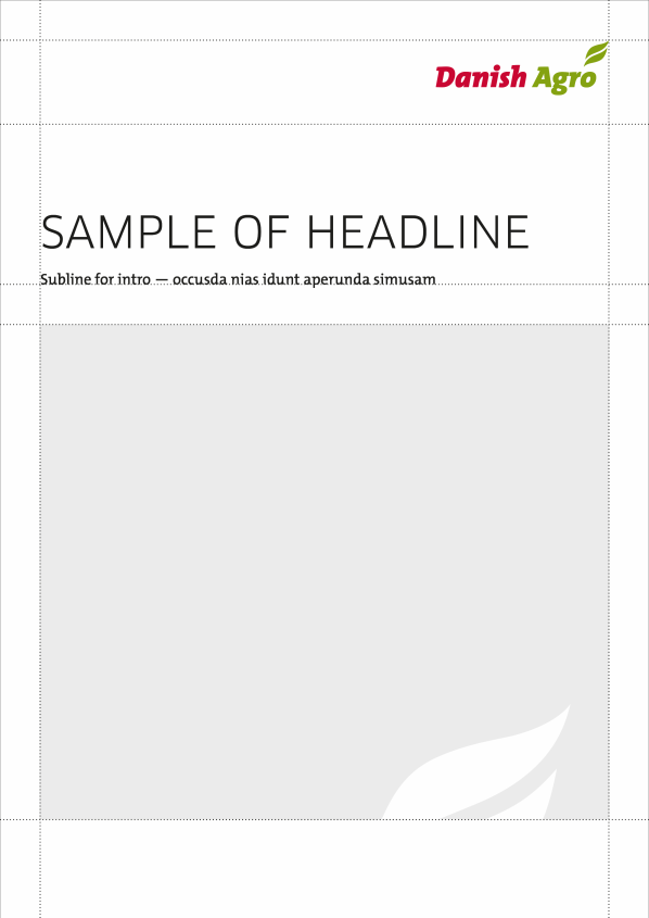 Besides the logo, the frontpage consists of a text area big enough to contain a headline in three lines, a headline with subheading, or a headline with an intro text up to three lines.