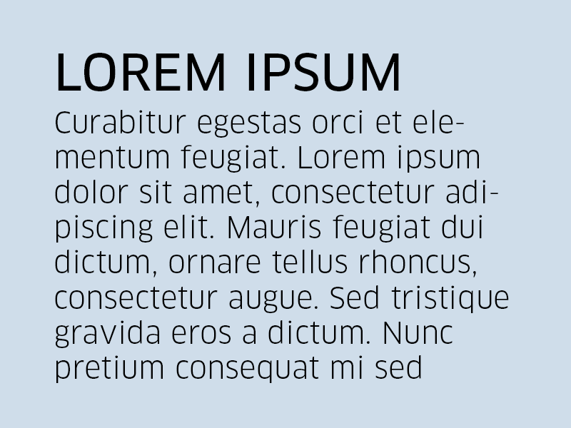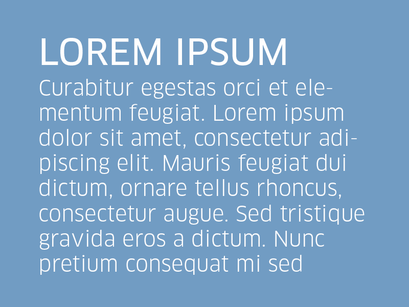 All text must be written in Clan. The standard box design is using Clan News as headline and Clan Book as body text.