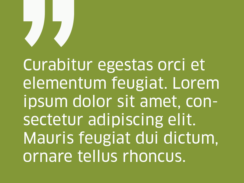Quote box with Dansih Agro Logo Green background and white text. The quote mark must be the same colour as the background itself to get a 'transparency look'.