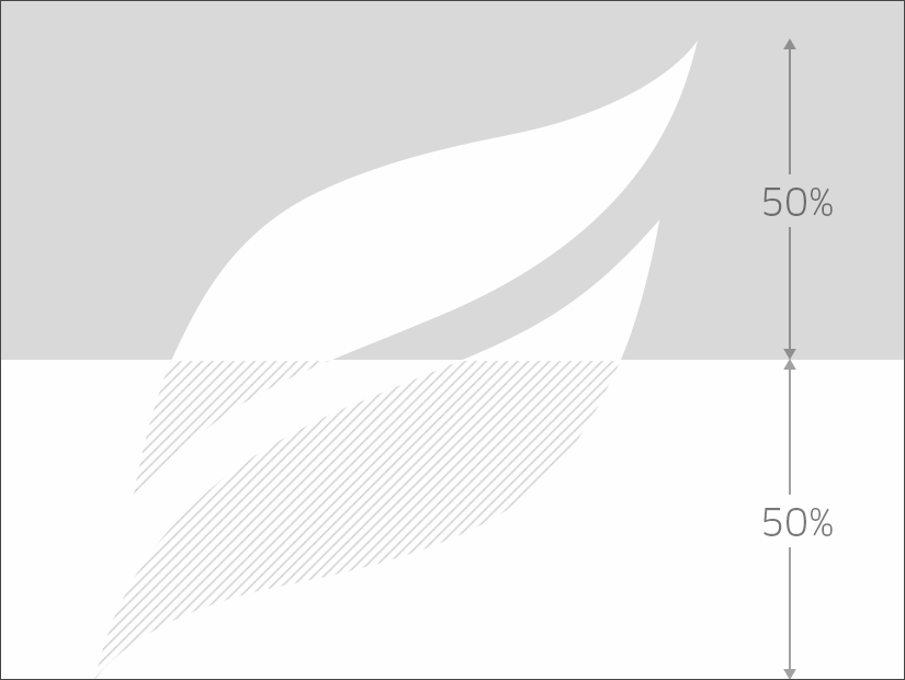 The trademark must always have minimum 130% space above and below it. Using a half trademark on a picture require a picture height of minimum 65% of the complete trademark.