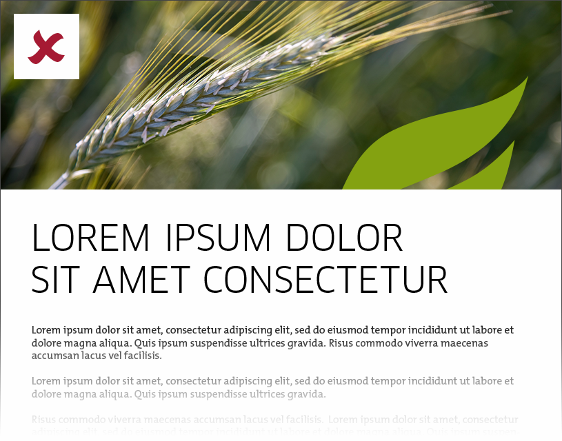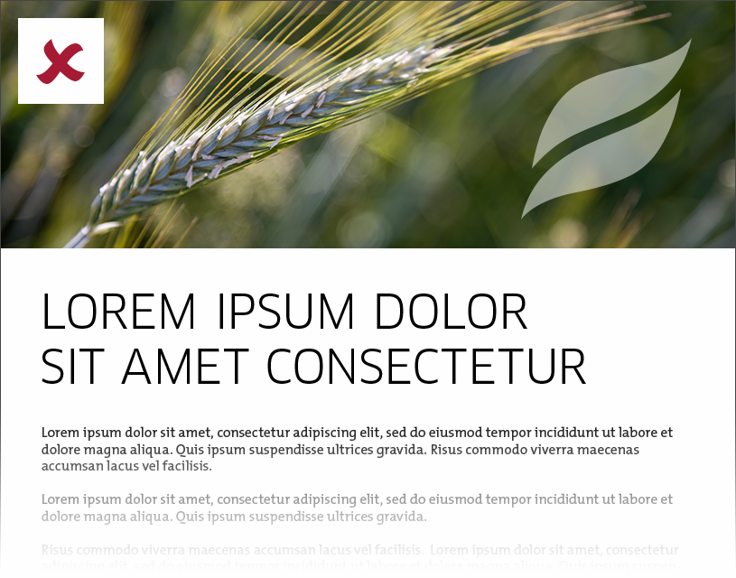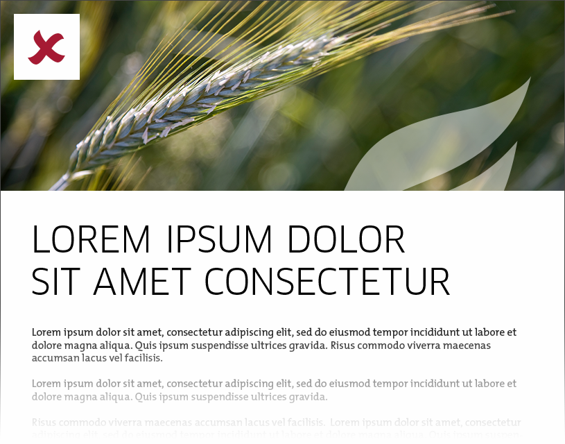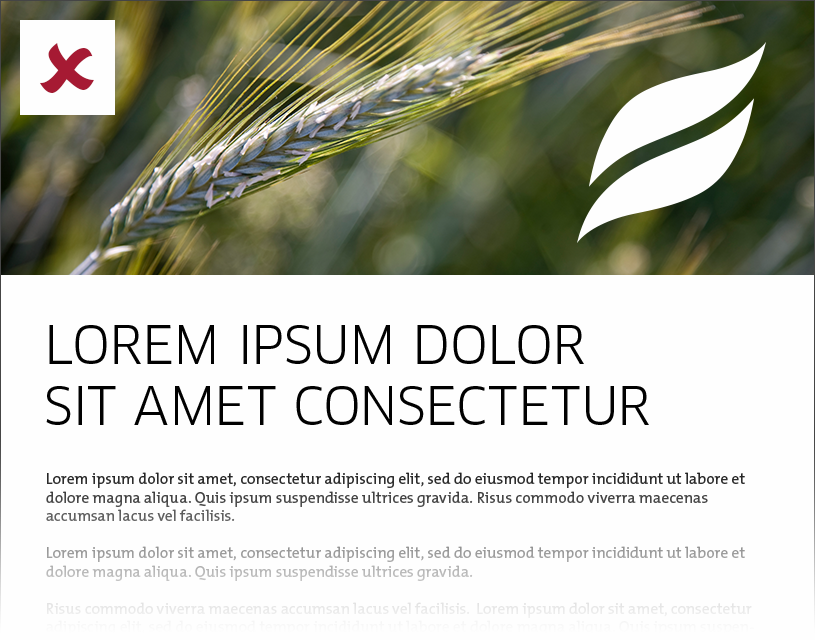 The half trademark should always be used as a graphic element in top of every offline advertisement. The half trademark should be white and have no transparency.