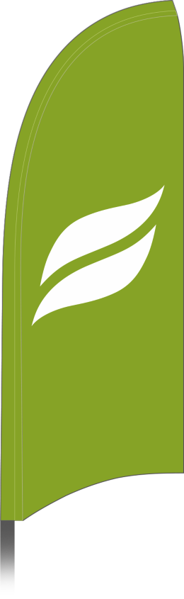 The secondary beach flag is logo green with white payoff. The size ratio of company logo to payoff is the same as used on flags.