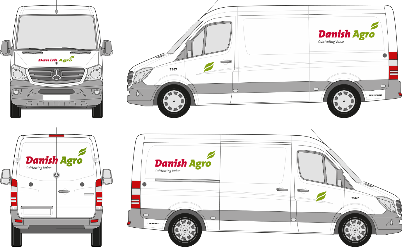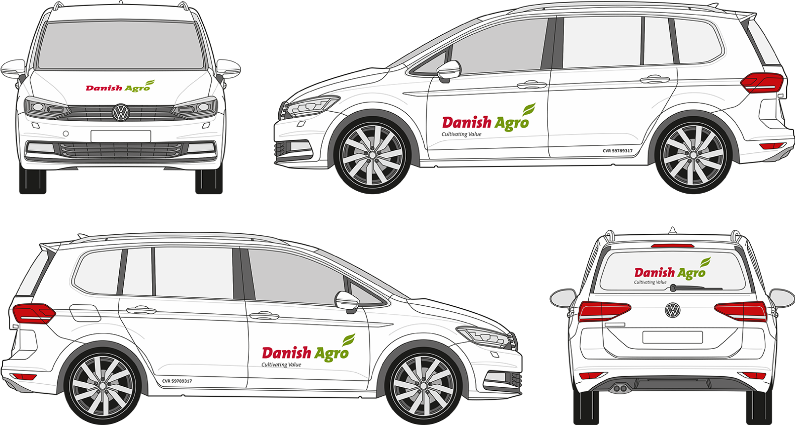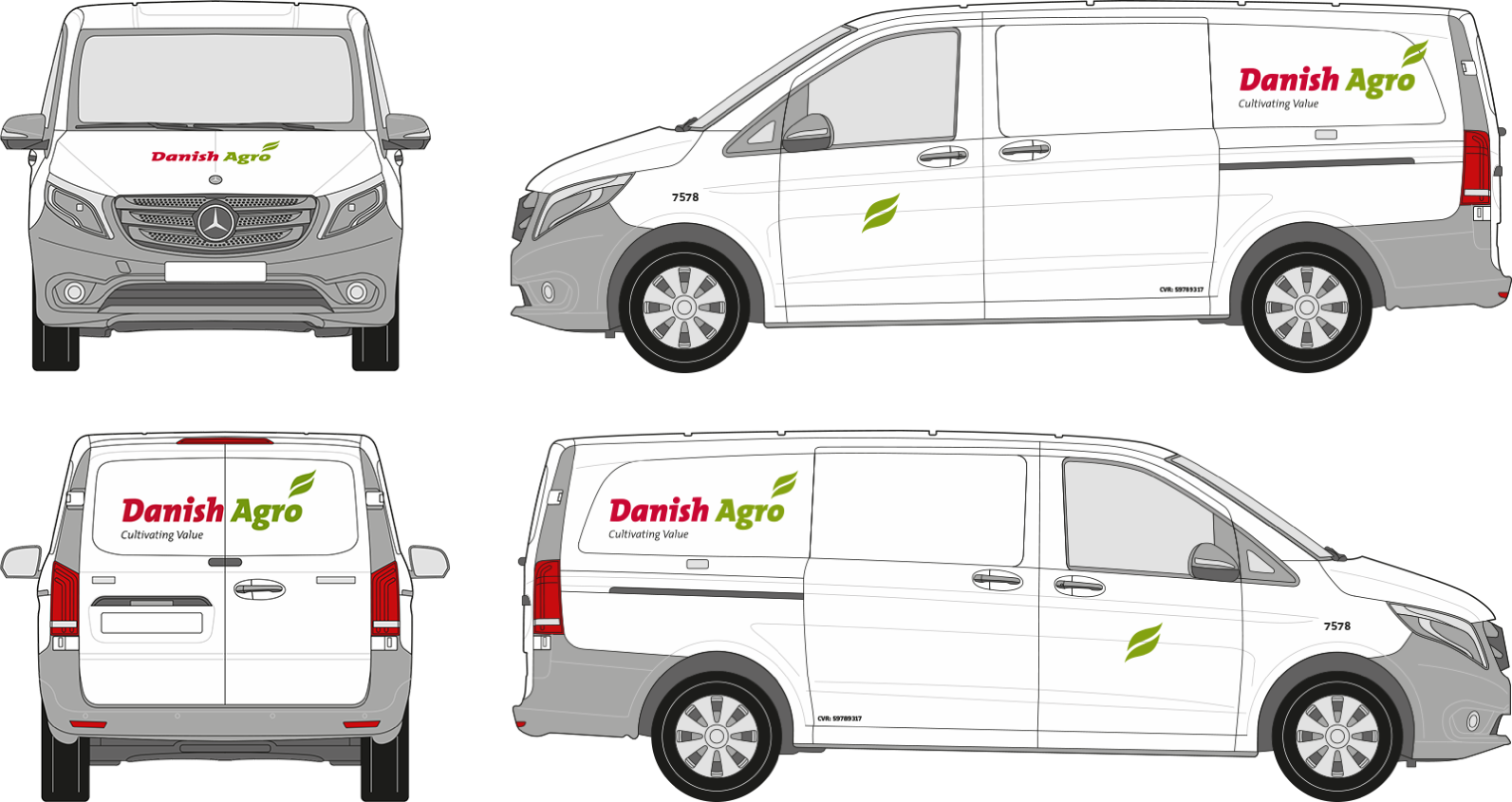 The basic design have the company logo at the rear with Cultivating Value below. In addition, we use either the logo with Cultivating Value or the trademark in logo green foil on the side of the car.